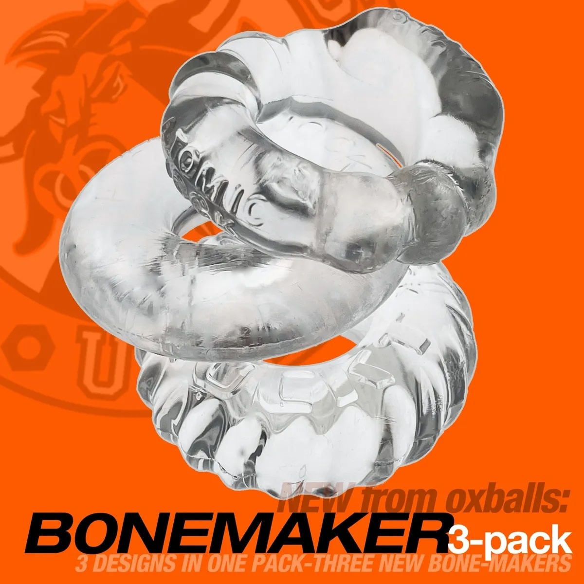 BONEMAKERS are all made of our softest, rubbery, incredibly stretchy Flextpr™--three cockrings that are designed for comfortable wear and always a bigger, harder basket. All three are the right-size rings for maximum stretch, we call them “fuckrings” because they are designed for harder play, JO, pumping…anytime you need more grip.