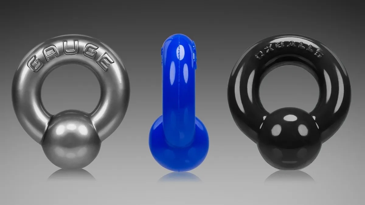GAUGE is a cockring inspired by pierced cocks and sacks with hefty gauged junk-jewelry.