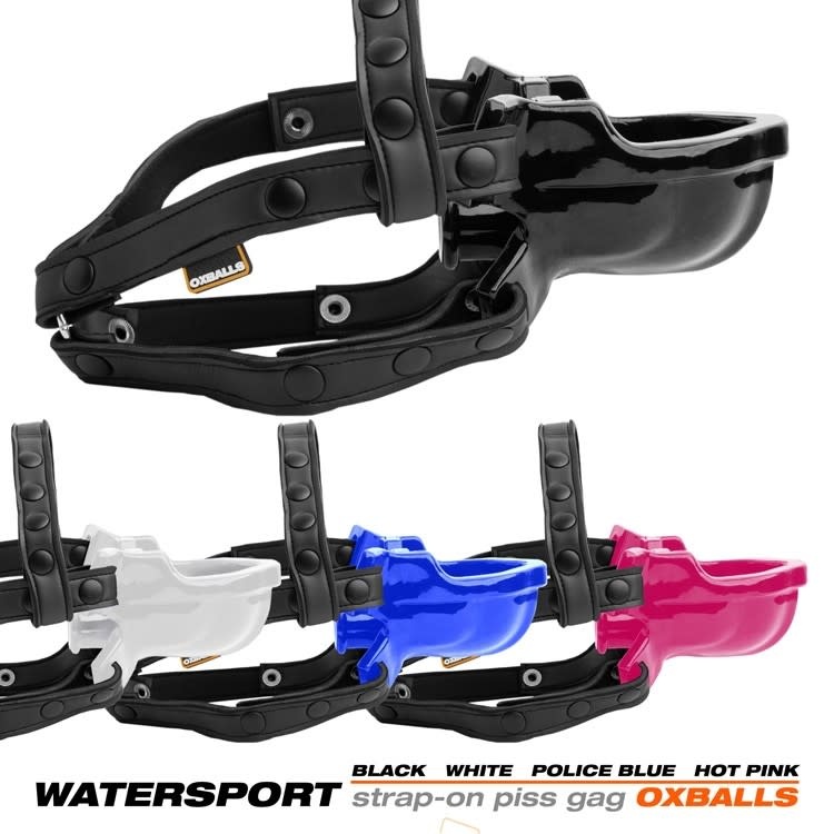 Oxballs WATERSPORT is the first strap-on watersports gag that is shaped to fit and can’t leak. The mouth-tube is part of the urinal with no seams or gaps and the strap tabs are designed to fit flush with the face.